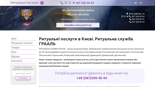 Название / Заголовок | Ритуальні послуги Київ УКРАЇНА – ритуальна служба ГРААЛЬ |