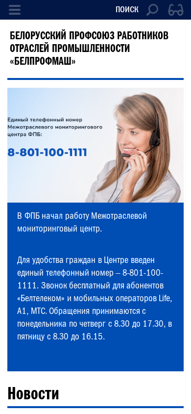 Название / ЗаголовокГлавная - БЕЛОРУССКИЙ ПРОФСОЮЗ РАБОТНИКОВ ОТРАСЛЕЙ ПРОМЫШЛЕННОСТИ «БЕЛПРОФМАШ»