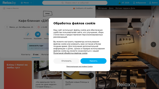 SEO-описание | Кафе-блинная ДЭПО на Октябрьской в Минске, ул. Октябрьская 23 – ⚡меню с ценами и фото, ⚡отзывы посетителей, адрес на карте✍бронирование столика онлайн на relax.by. |