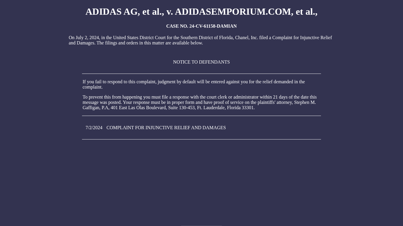 Название / Заголовок | ADIDAS AG, et al., v. ADIDASEMPORIUM.COM, et al., |