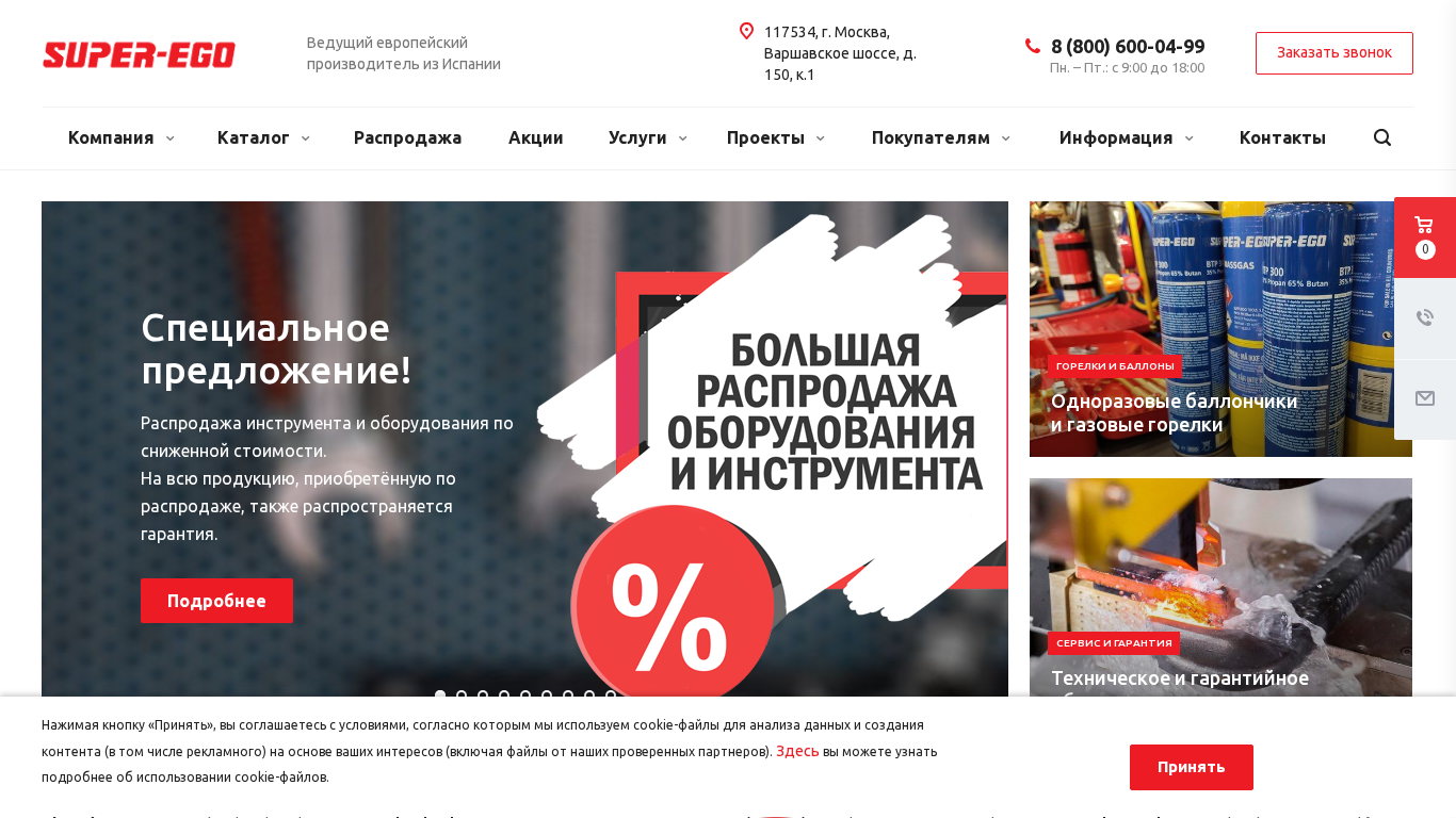 SEO-описание | Профессиональный инструмент и оборудование для строительства и промышленности. Официальное представитель SUPER-EGO (Супер-Эго, Испания) в России. Звоните по телефону 8 (800) 600-04-99 |