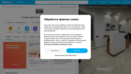 SEO-описание | Салон красоты Paris (Париж) в Минске , пр-т Независимости 6/5 – отзывы, адрес на карте, телефоны, график работы и карта проезда на Relax.by. |