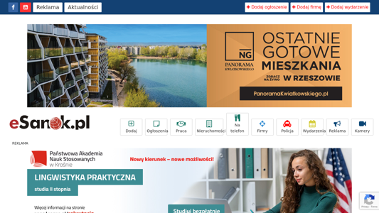 Ключевые слова | portal esanok sanok aktualności informacje wiadomości ogłoszenia firmy kronika policyjna kultura sport hokej |