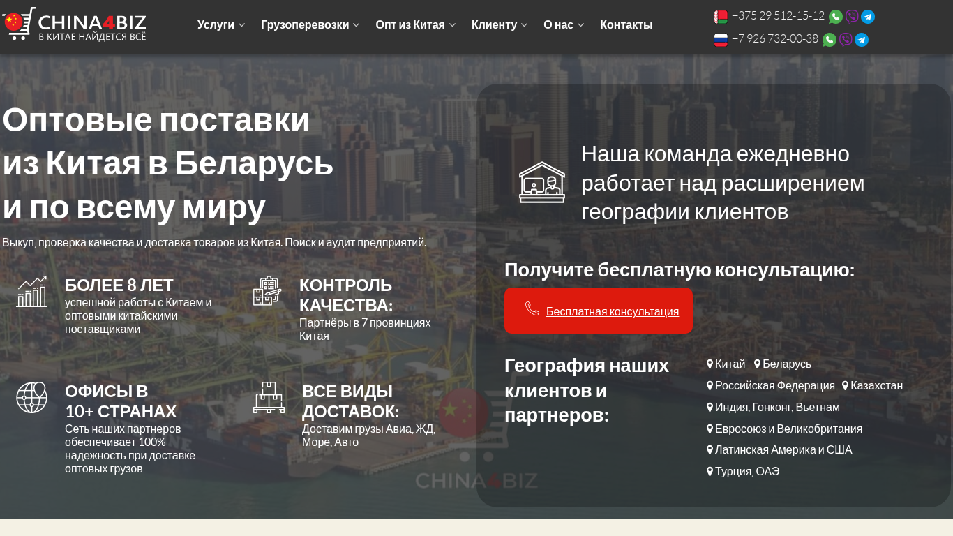 SEO-описаниеПрямые поставки товаров оптом из Китая в Беларусь от китайских производителей. Посредник грузоперевозка в РБ официально, с полным пакетом документов и под ключ. ☎ Звоните! +375 29 512-15-12