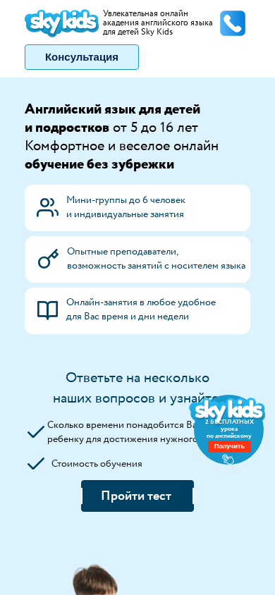 SEO-описаниеУвлекательная онлайн академия английского языка для детей SkyKids. Занятия для детей и подростков от 5 до 16 лет. Подарочные сертификаты на курсы. Групповые, индивидуальные и и парные уроки английского язык для детей. Бесплатный первый урок.