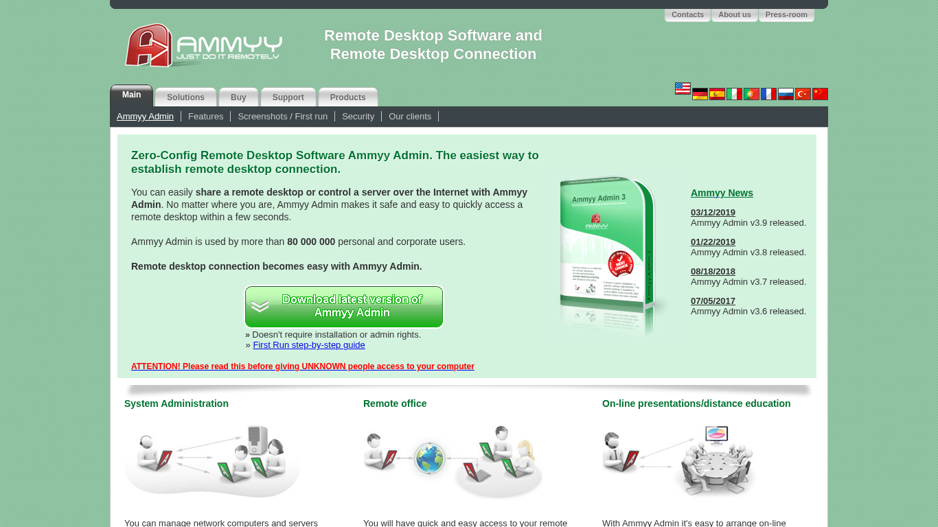 SEO-описание | Popular zero-config free remote desktop software. It's used for system administration, webinars and instant remote desktop connection over the Internet. Free remote access software Ammyy Admin makes control of a remote PC quick and simple. |