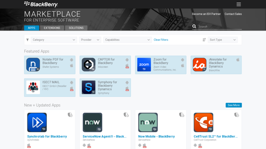 SEO-описание | The BlackBerry Marketplace for BlackBerry Enterprise Applications provides BlackBerry customers a wide range of secured BlackBerry apps built by our BlackBerry partners that extend your Good Dynamics and BlackBerry Enterprise Servers Blackberry environments. Choose from a wide range or apps spanning from productivity to business intelligence to monitoring to get even more from your investment in BlackBerry. Start your free trial of our applications today! |