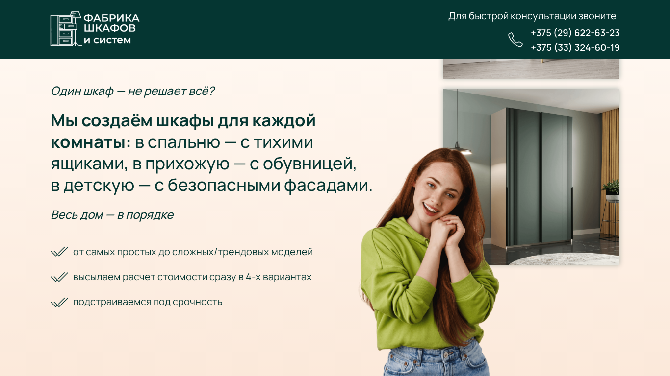 SEO-описание | Проектируем и производим семейные шкафы с зонированием под каждого: отделения для верхней одежды, белья, обуви, игрушек и аксессуаров. Всё на своих местах. |