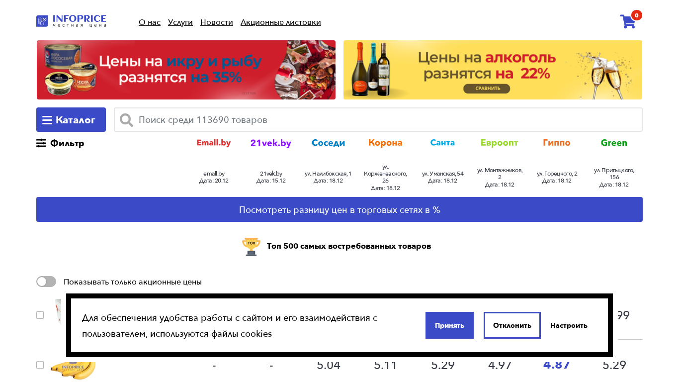 | Название / Заголовок | INFOPRICE — сервис сравнения цен на продукты в магазинах Минска |