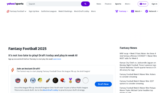 Название / ЗаголовокFantasy Football 2025: Create or Join a League, Rankings, Analysis & More | Fantasy Football | Yahoo! Sports