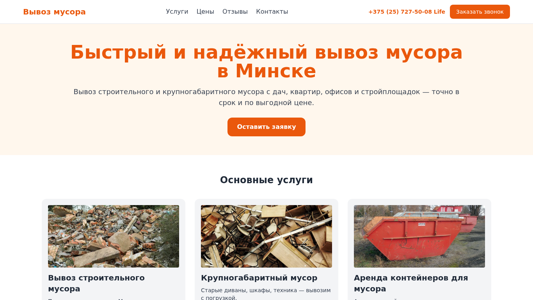 SEO-описание | Вывоз строительного и крупногабаритного мусора в Минске и Минском районе. Быстро, надёжно, недорого. |