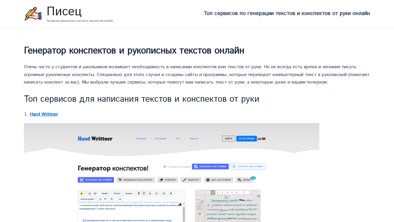 SEO-описание | Нужно сделать рукописный конспект или текст из компьютерного текста? Обзор лучших генераторов текста и конспектов от руки на Писец. |