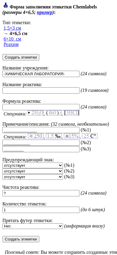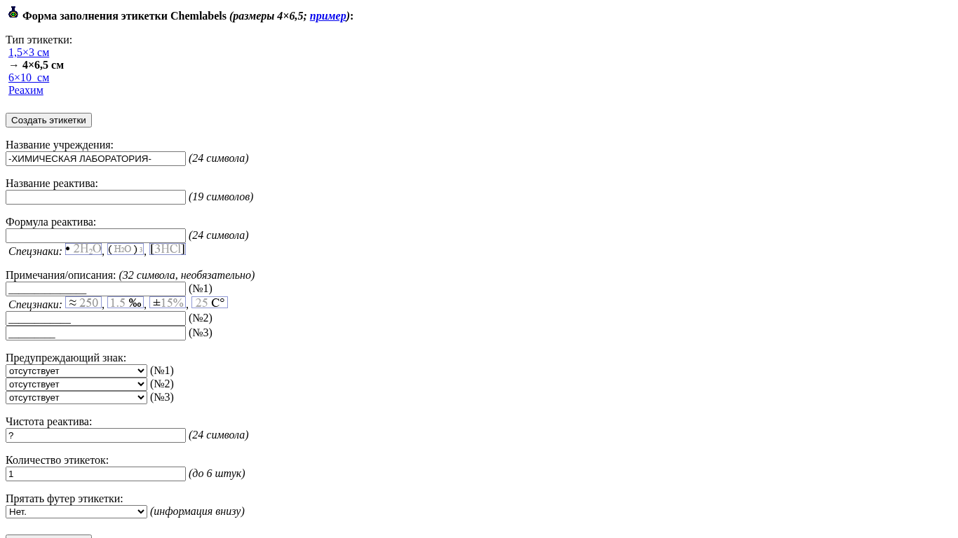 Название / Заголовок | Chemlabels 1.0 online version on Chem.by - 4*6,5 |