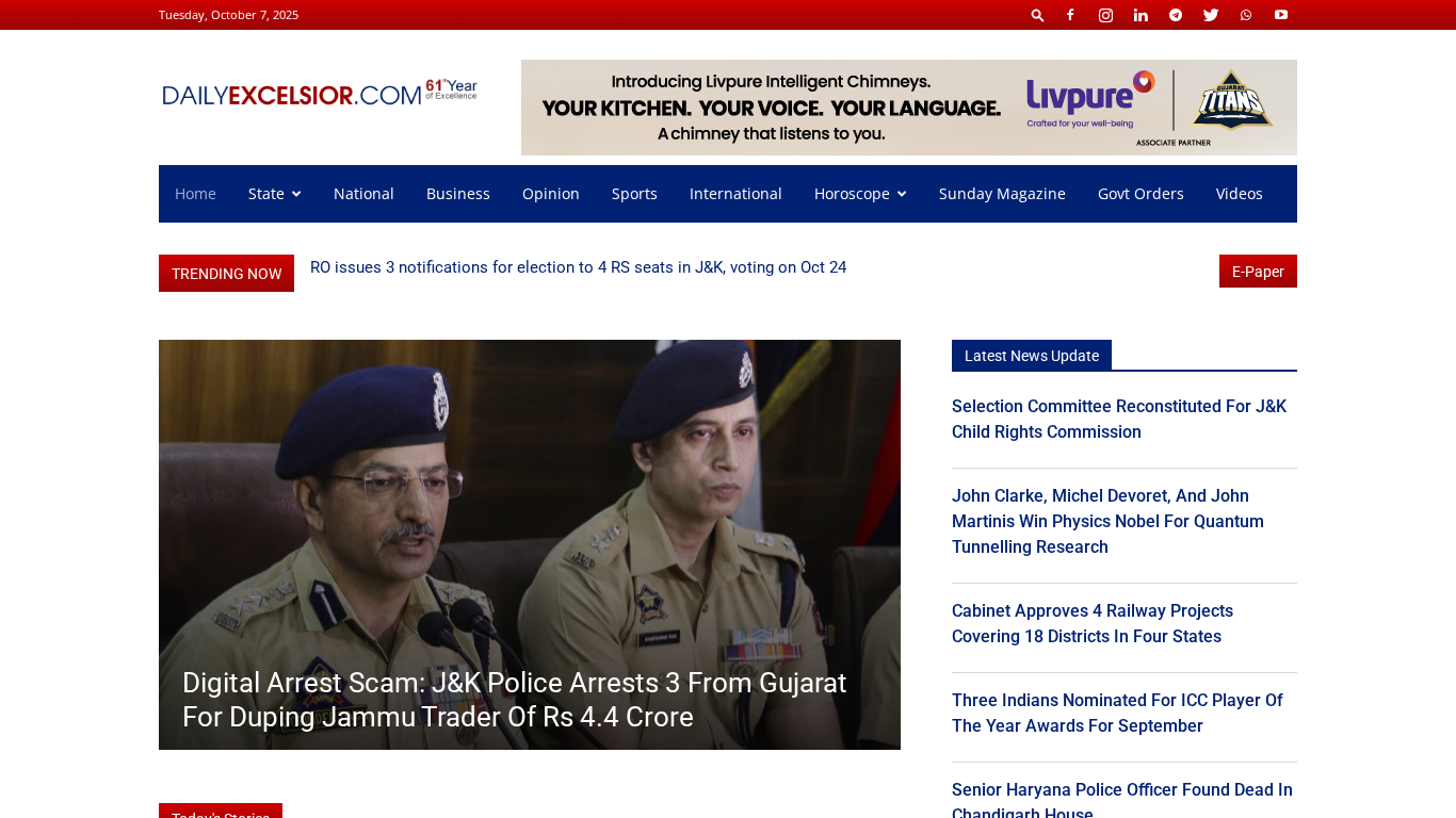 SEO-описание | Daily Excelsior India's largest platform for News of Jammu Kashmir and ladakh.Find latest update on business,sports,international, and state news and affairs |
