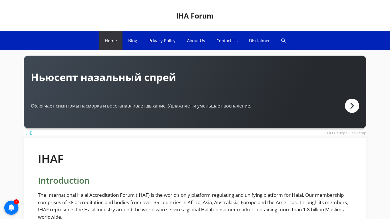 SEO-описание | The International Halal Accreditation Forum (IHAF) is the world’s only platform regulating and unifying platform for Halal. Our membership comprises of 38 accreditation and bodies from over 35 countries in Africa, Asia, Australasia, Europe and the Americas. |