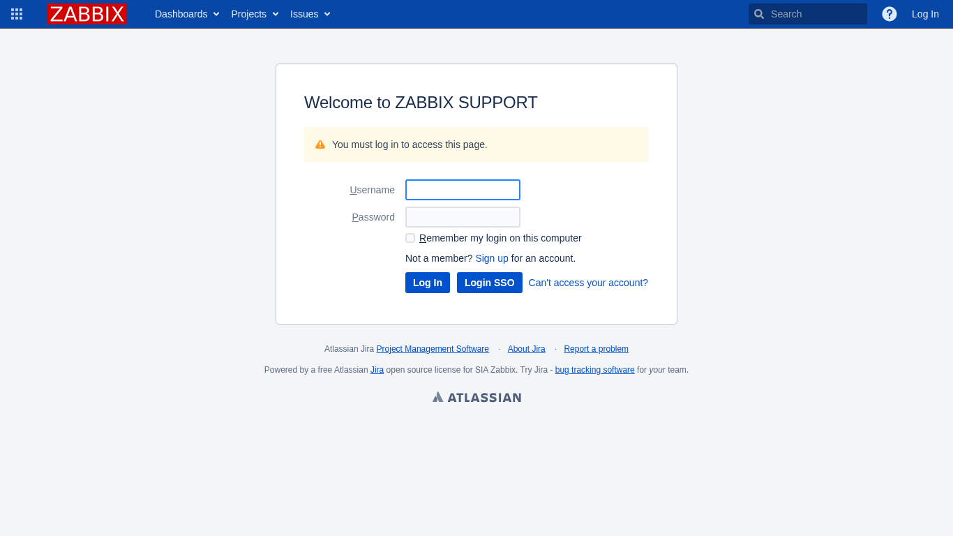 Название / Заголовок | Log in - ZABBIX SUPPORT |
