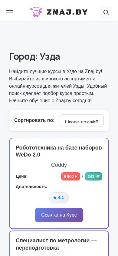 SEO-описание | Найдите лучшие онлайн-курсы в Узда для изучения программирования, маркетинга, дизайна и др. Агрегатор курсов поможет начать обучение уже сегодня. |