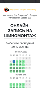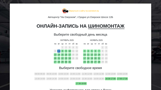 SEO-лексика | выберите 2025 запись услуги шиномонтажа вернуться сайту na-ozerskom автоцентр озерском гродно озерское шоссе 12б онлайн-запись шиномонтаж свободный день месяца октябрь |