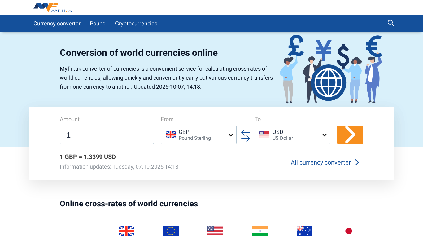 SEO-описание | Use currency converter Myfin.Uk online with live exchange rates for all currencies and have accurate data. |