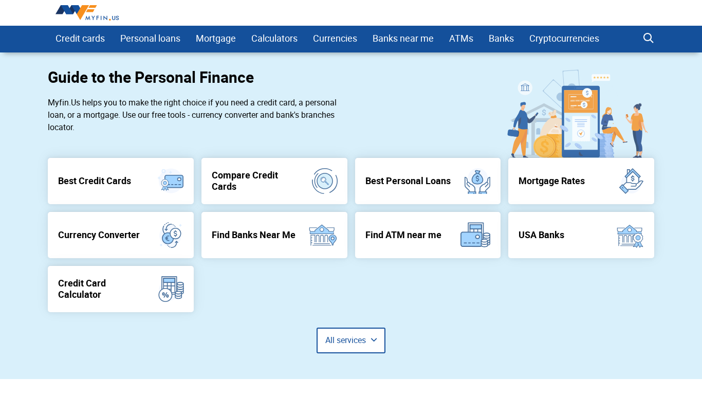 SEO-описаниеUse Myfin.Us and find best choice for you if you need credit card, personal loan, mortgage. Use our free tools - currency calculator.
