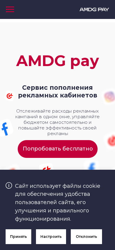 SEO-описаниеAMDG Pay предоставляет надёжный способ пополнения рекламных аккаунтов в Беларуси. ✅ Зачисление день в день. ✔️ Оплатить рекламу Google Adwords, Яндекс.Директ, TikTok, VK Реклама, Facebook, Instagram, MyTarget.