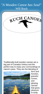 SEO-описаниеWill Ruch crafts traditionally-built wooden canoes which are a big part of Canada's history and the perfect way to enjoy your surroundings at nature's pace. They are the blending of form and function, graceful curves, and glowing varnish that gives pleasure to body and soul.