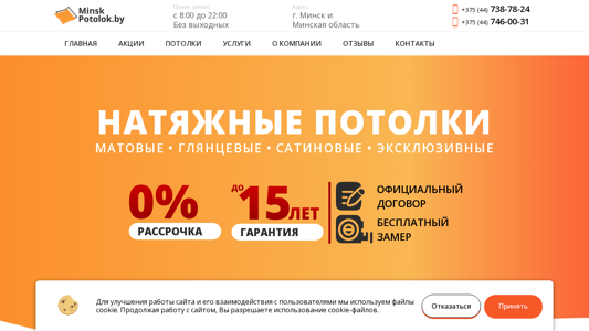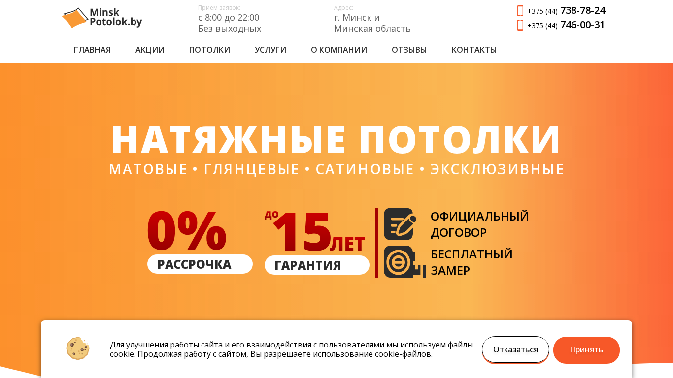 SEO-описание | Предлагаем профессиональную установку натяжных потолков в Минске. Широкий выбор глянцевых, матовых и потолков с фотопечатью. Быстрый монтаж, качественные материалы, гарантия. Бесплатный замер и консультация. |