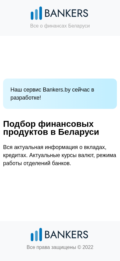 SEO-описание | Bankers.by — финансовый портал о всех банках России и банковских продуктах. Поиск и расчет выгодных кредитов, вкладов, ипотеки, карт. Актуальные курсы валют в России, финансовые новости. |