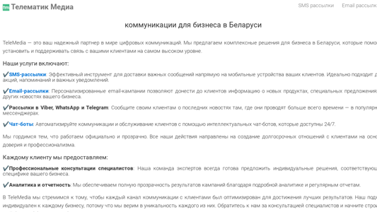 SEO-лексика | бизнеса рассылки коммуникации telemedia клиентами клиентов телематик медиа sms email беларуси решения которые наши важных новостях вашего каждому специалистов результатов |