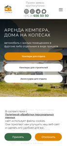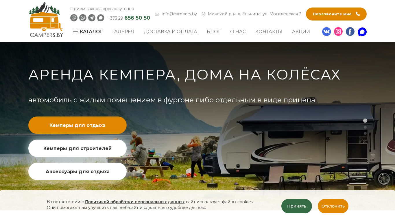 | AI-анализ | This online resource is dedicated to providing rentals of campers and trailers (camper vans) in Minsk, Belarus. The website offers a wide range of fully autonomous campers with various sizes and characteristics, available at affordable prices starting from 35 rubles per day with significant discounts. Users can contact the service at the phone number +375 29 656 50 50 or email info@campers.by for inquiries. The site includes sections for campers for recreation, campers for builders, accessories for recreation, and a blog, among others. The catalog features various campers with their specifications such as length, sleeping places, weight, and amenities like sanitary facilities and hot water. The website promises convenience with the delivery and booking of campers without prepayment and deposit. All campers are technically sound and well |