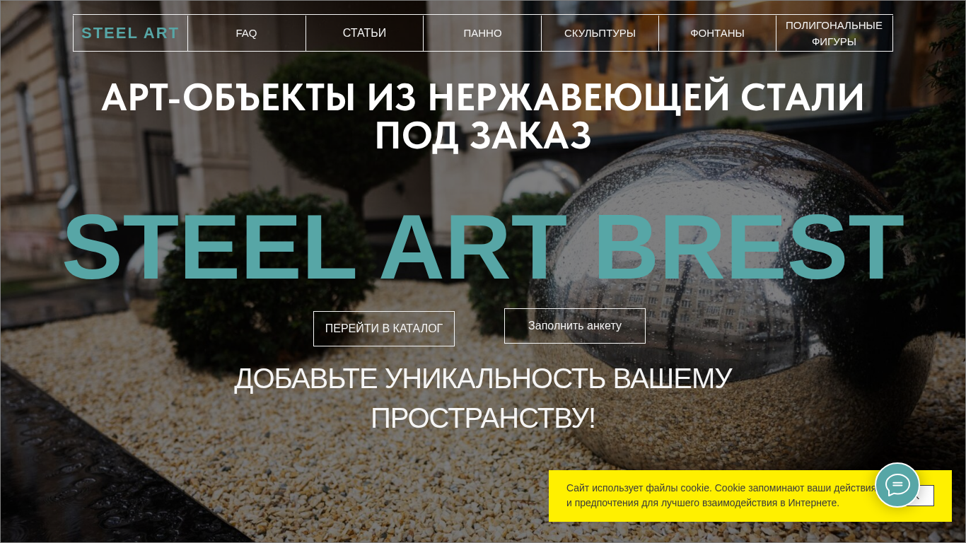 SEO-описание«Steelart — изготовление арт-объектов из нержавейки в Бресте. Скульптуры для интерьера, сада и бизнеса. Индивидуальные проекты. Беларусь, РБ.»