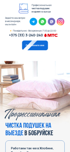 SEO-описание | Профессиональная чистка подушек и одеял на выезде в Бобруйске, Жлобине, Рогачёве. Пенсионерам скидки. Переходите на сайт |