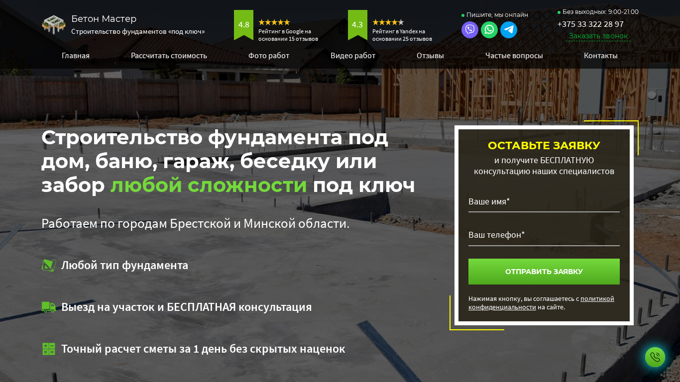Название / Заголовок | Бетон-мастер. Заливка фундаментов домов и заборов под ключ |