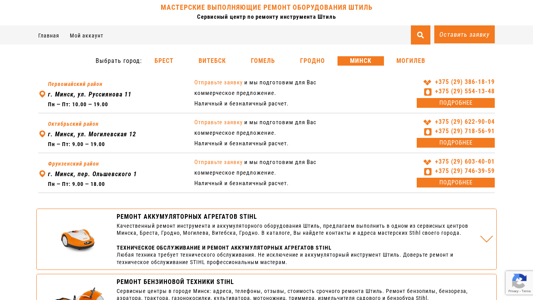 SEO-описание | Сервисные центры осуществляющие ремонт инструмента Штиль в Минске, Гродно, Гомеле, Витебске, Могилеве, Бресте и в областных центрах Беларуси! |