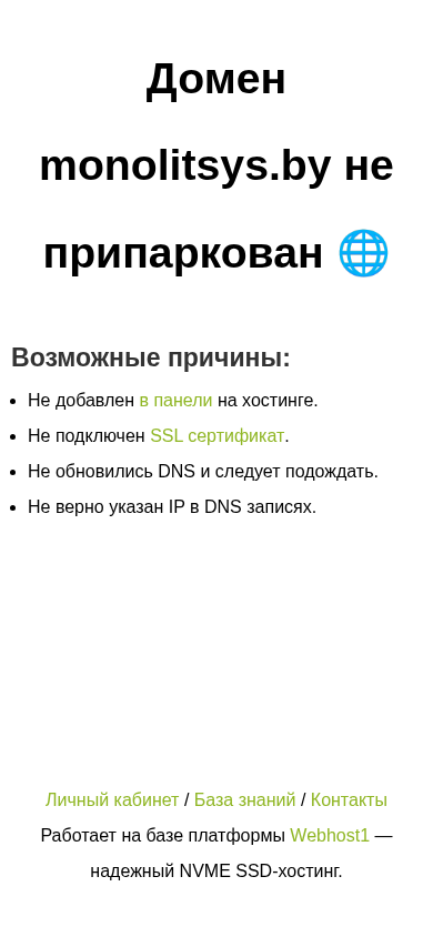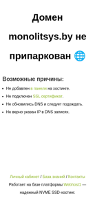 SEO-лексикаприпаркован monolitsys dns домен возможные причины добавлен панели хостинге подключен ssl сертификат обновились следует подождать верно указан записях личный кабинет