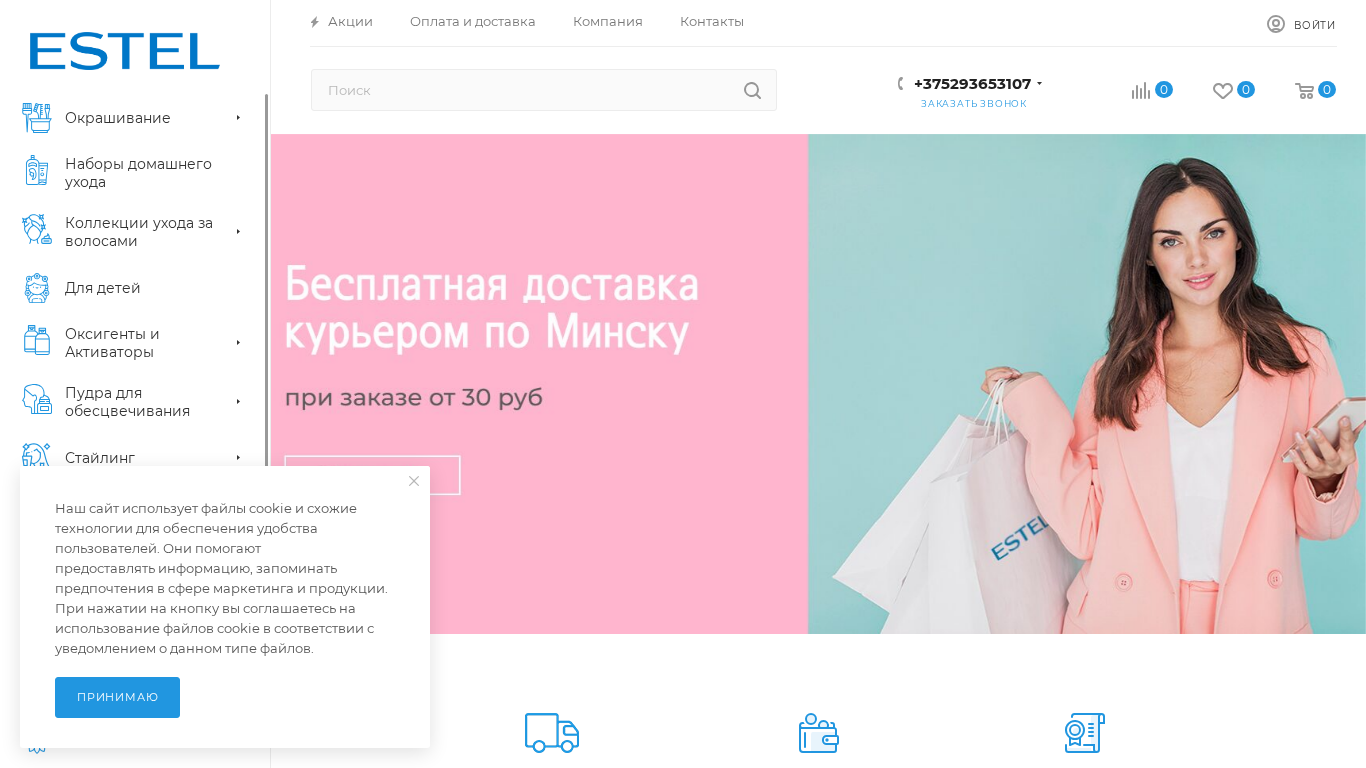 SEO-описание | Профессиональная косметика Estel для окрашивания и ухода за волосами. Доставка по всей Беларуси. Официальный дистрибьютор бренда в Беларуси. |