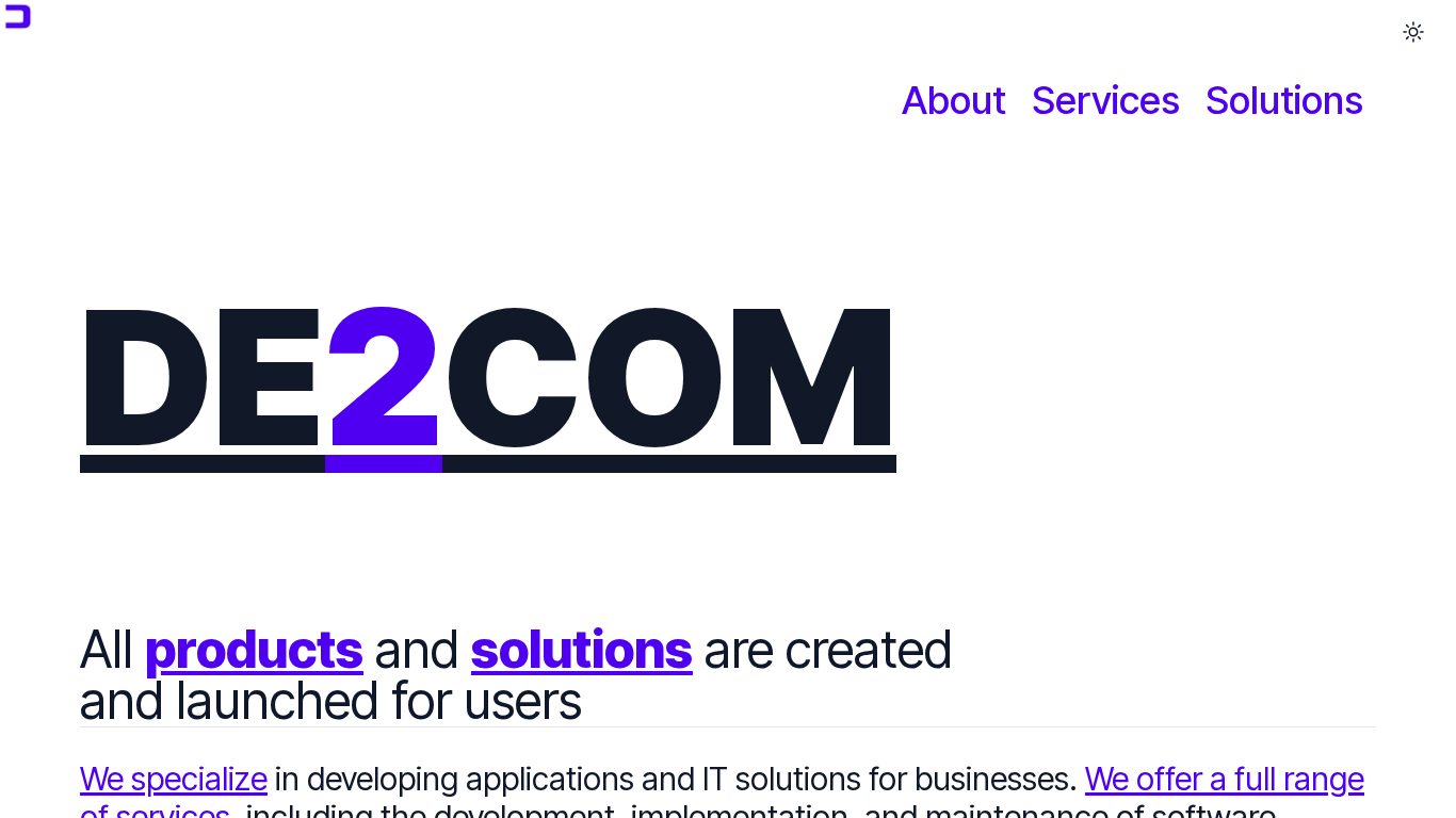 Название / Заголовок | DE2COM Development | Web Application | IT solutions | Sites | Online Stores | CMS | ERP | CRM | API |