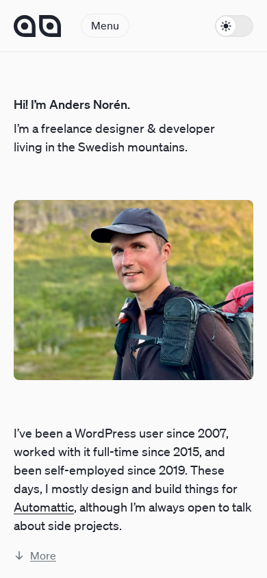 SEO-описание | Anders Norén is a freelance designer, developer and creator of free WordPress themes from Vemdalen, Sweden. |