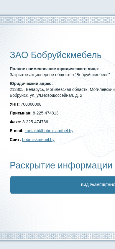 kontakt@bobruiskmtbel.by, mochalova2@tut.by | |