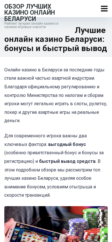 Название / ЗаголовокЛучшие онлайн казино РБ 2025 — бонусы и быстрый вывод