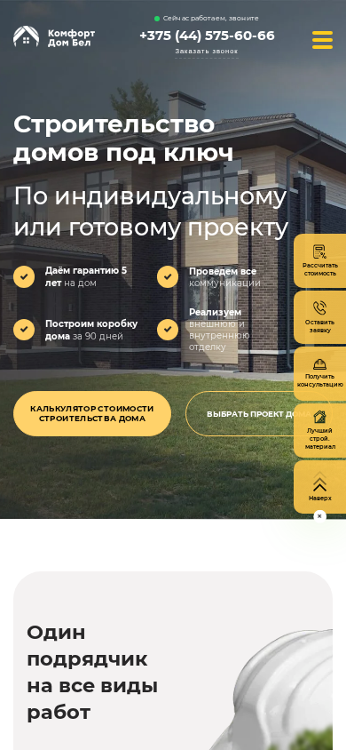 SEO-описание | Строительство домов «под ключ» с гарантией — 10 лет в договоре. Построили более — 80 домов. Один подрядчик на все виды работ. |