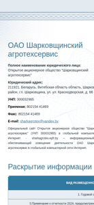 Название / ЗаголовокШарковщинский агротехсервис ОАО