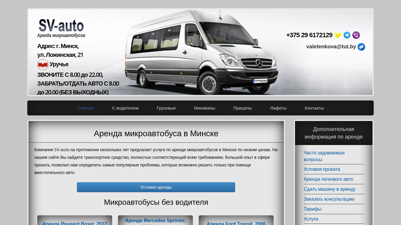 Название / Заголовок | Аренда микроавтобуса в Минске - Аренда и прокат микроавтобусов в Минске, аренда и прокат микроавтобуса с/без водителя | SV-AUTO |