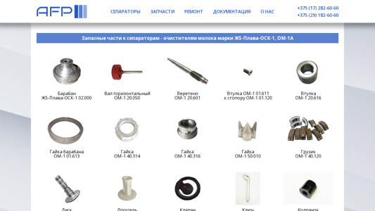 Название / Заголовок | Сепараторы молока, запчасти, обслуживание и ремонт центробежного оборудования в Республике Беларусь | АФП |