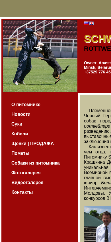 SEO-описание | В питомнике Schwarzer Held (Минск) лучшие ротвейлеры Беларуси! Наших ротвейлеров отличает: крепкое здоровье, отличная психика и характер, правильный экстерьер. |