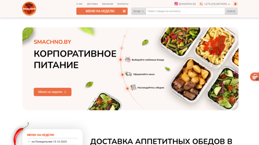 Название / Заголовок | СМАЧНО БАЙ - обеды в офис в Минске с доставкой, организация питания для офиса, на стройках, на производстве, корпоративное питание, организация обедов для персонала |