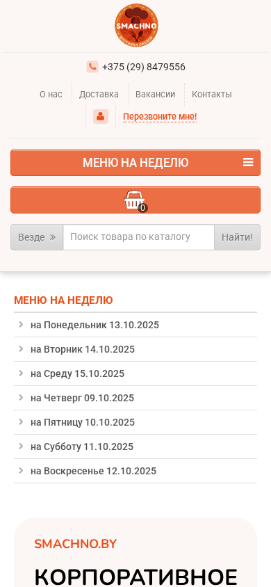 SEO-лексика | 2025 меню неделю понедельник вторник среду четверг пятницу субботу воскресенье обедов доставка питание заказ 375 smachno везде блюда обеды корпоративное |