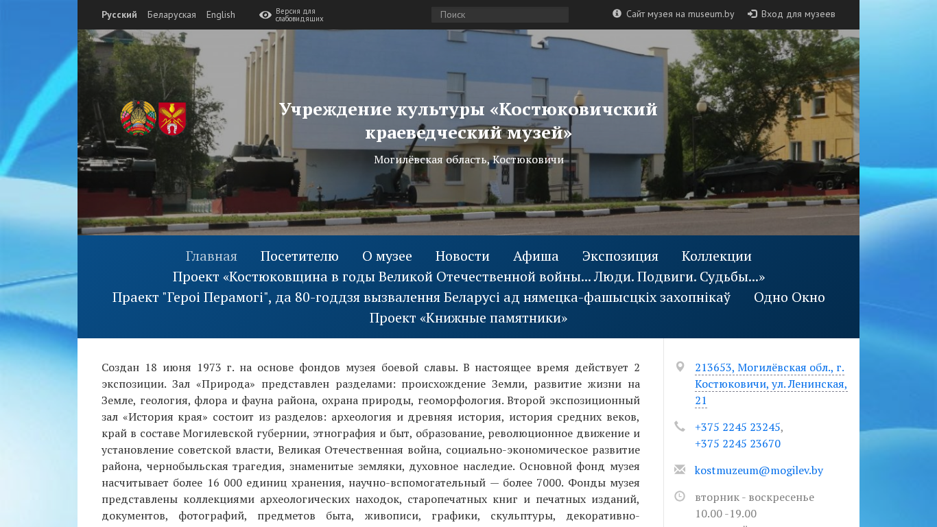 SEO-описание | Учреждение культуры «Костюковичский краеведческий музей» — новости и афиша мероприятий, информация для посетителей, цены, экспозиция, коллекции, материалы для музейщиков. |