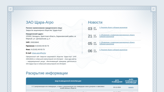 Сайт: shara-agro.epfr.by — HTTP 200 (OK)