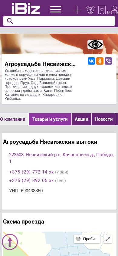 Название / Заголовок | Агроусадьба Нясвижския вытоки - Усадьба находится на живописном холме в окружении лип и елей прямо у истоков реки Уша. Парковка. Детский городок. Пруд. Сад. Большой газон. Проживание в двухэтажных коттеджах со всеми удобствами. Баня. Пейнтбол. Катание на лошадях. Квадроцикл. Рыбалка.. 222603, , Качановичи д., Победы, 1 |